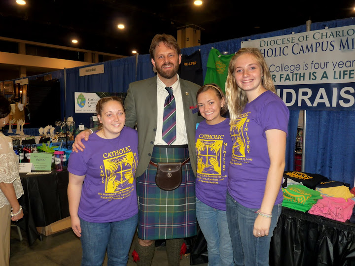 This weekend is the annual Eucharistic Congress held by the Roman Catholic Diocese of Charlotte. As campus minister for WCU, I will be in attendance Friday and Saturday manning our Campus Ministry Fundraising table in the vendor area of the event. We will be selling Catholic tshirts and other goodies, and also items in the St. Ninian's Day papal tartan, which I designed for Pope Benedict XVI on behalf of the Scottish Catholic bishops for his visit to Scotland on Sept. 16, 2010.